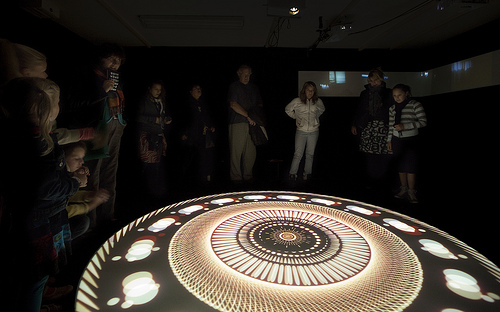 Winner of the Visual Music Award 2011, Sync is a circular looping animation projection installment “based on the idea that there is an underlying unchanging synchronisation at the centre of everything; a sync that was decided at the very beginning of time. Everything follows from it, everything is ruled by it: all time, all physics, all life. And all animation.”